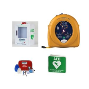 HeartSine Samaritan 500P, Wall Alarmed Cabinet with Strobe Light, 3D AED Sign and Prep Kit Defibrillator Bundle